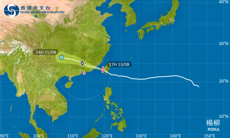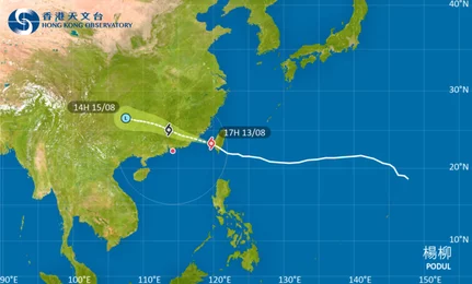 台灣颱風楊柳最新消息|天文台表示,楊柳會在今日橫過台灣海峽,並在明日橫過福建至廣東內陸及逐漸減弱。SundayMore整合颱風路徑、預測位置等,亦提供颱風影響下的受影響航班、旅遊保險賠償資訊。