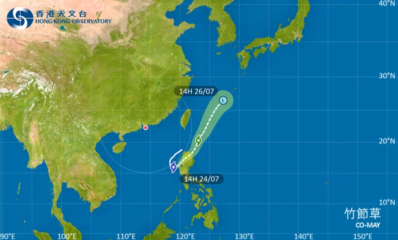 台灣颱風竹節草最新消息|天文台表示,竹節草會在今日轉向東北方向移動,隨後橫過呂宋北部並移向台灣以東海域。SundayMore整合颱風路徑、預測位置等,亦提供颱風影響下的受影響航班、旅遊保險賠償資訊。