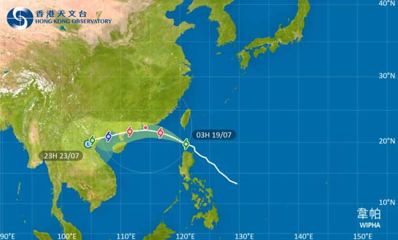 熱帶風暴韋帕位於北緯 197 度,東經 1210 度 (即香港之東南偏東約 770 公里)。中心附近最高持續風速每小時 75 公里。韋帕會在今日橫過呂宋海峽並進入南海北部。