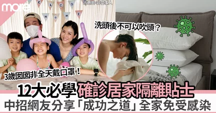 新冠肺炎Omicron確診後居家隔離需注意什麼,才能減傳染予同住家人的機會?在疫情嚴重下,不少市民在確診新冠肺炎Omicron後,都希望可以留在家中進行隔離。但是患者居家隔離時,可能會將病毒傳染給其他家庭成員。早前,有位網民大方分享了居家隔離期間的心得,其採取的措施成功令丈夫、年幼的女兒及工人未被傳染,大家不妨參考一下!
