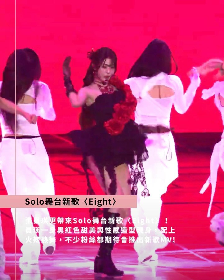 日前,韓國人氣女團IVE正在舉行世界巡迴演唱會《SHOW WHAT I AM》,成員張員瑛化身「最美DJ」大玩電音,現場氣氛High爆,網友紛紛讚歎「神直拍再+1」!張員瑛更帶來Solo舞台新歌〈Eight〉!一身黑紅色甜美與性感造型現身,配上火辣熱舞,不少粉絲都期待會推出新歌MV!