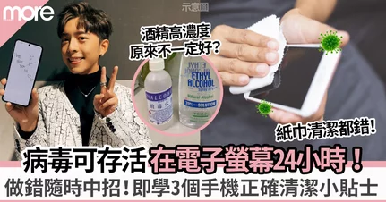 新冠肺炎(新型冠狀病毒)疫情在全球迅速擴散,確診個案幾乎每日飆升,除了戴口罩、平光鏡保護自己之外,還有一個最危險的地方經常被疏忽,就是你機不離身的「手機」,日本綜藝節目《教えてもらう前と後》指出病毒在電話表面竟能存活高達24小時,呼吸道疾病院長大谷義夫分享3個正確清潔手機螢幕小貼士,做錯隨時會中招!