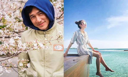 在海邊的露台,秀髮隨風飄逸,很有女神的風範,仙氣滿滿。