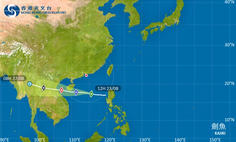 颱風劍魚最新消息|天文台表示,劍魚會在未來一兩日大致移向海南島南部及以南海域。SundayMore整合颱風路徑、預測位置等,亦提供颱風影響下的受影響航班、旅遊保險賠償資訊。