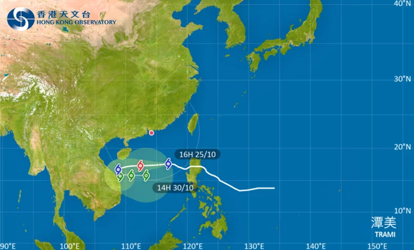 颱風潭美最新消息|天文台表示,潭美會在明日橫過南海中北部並移向海南島以南海域。SundayMore整合颱風路徑、預測位置等,亦提供颱風影響下的受影響航班、旅遊保險賠償資訊。