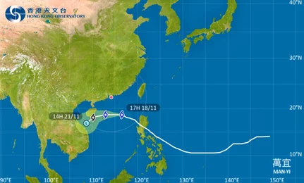 颱風萬宜最新消息|天文台表示,萬宜會在未來一兩日橫過南海北部,大致移向海南島以南一帶並逐漸減弱。SundayMore整合颱風路徑、預測位置等,亦提供颱風影響下的受影響航班、旅遊保險賠償資訊。