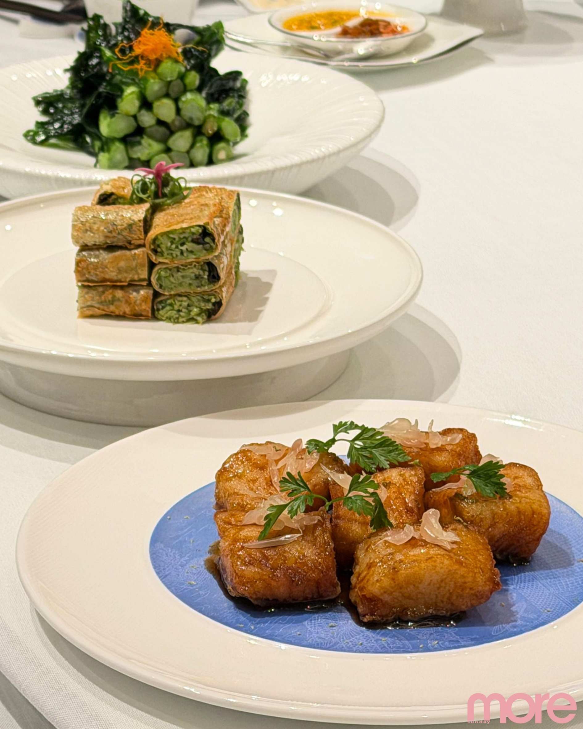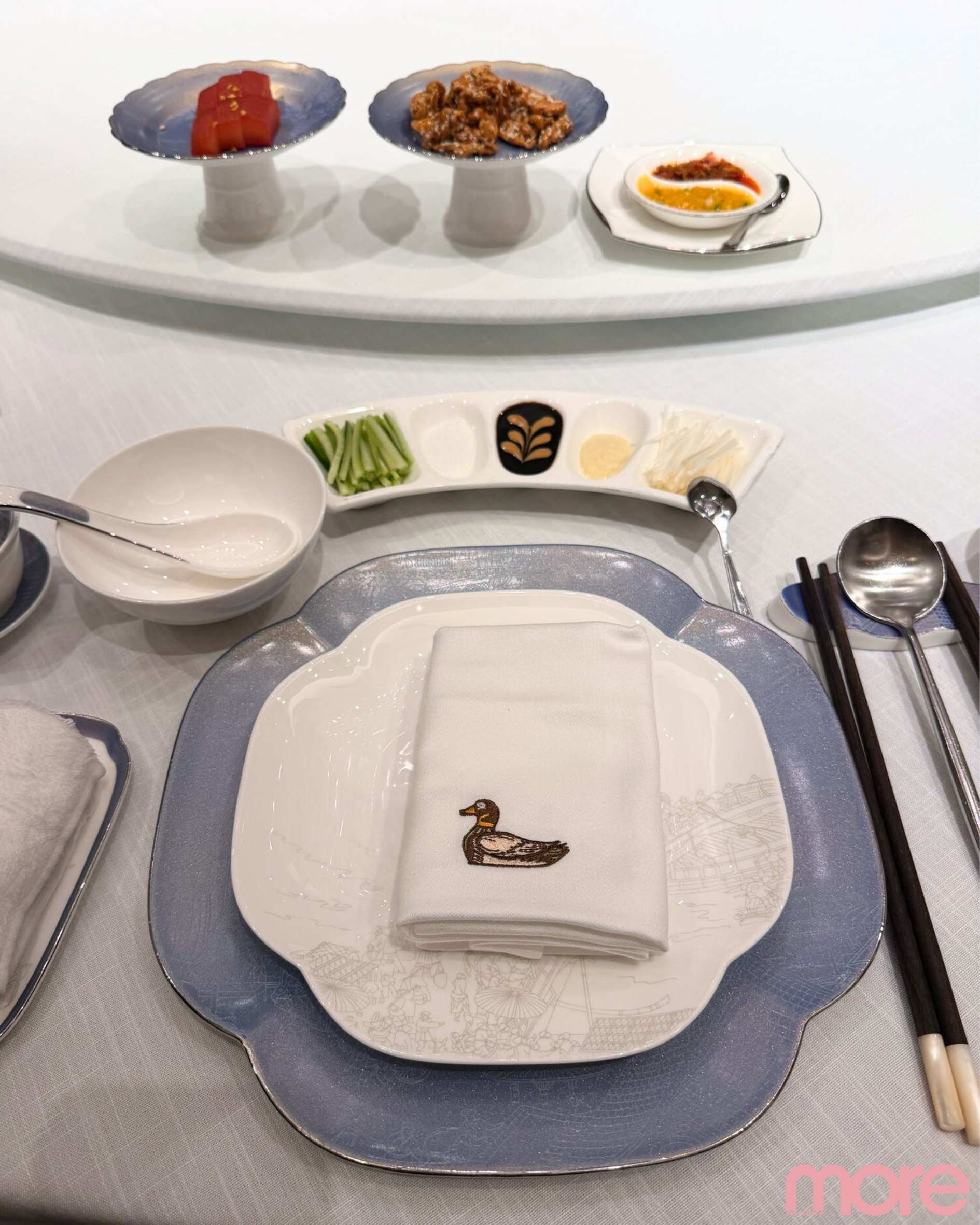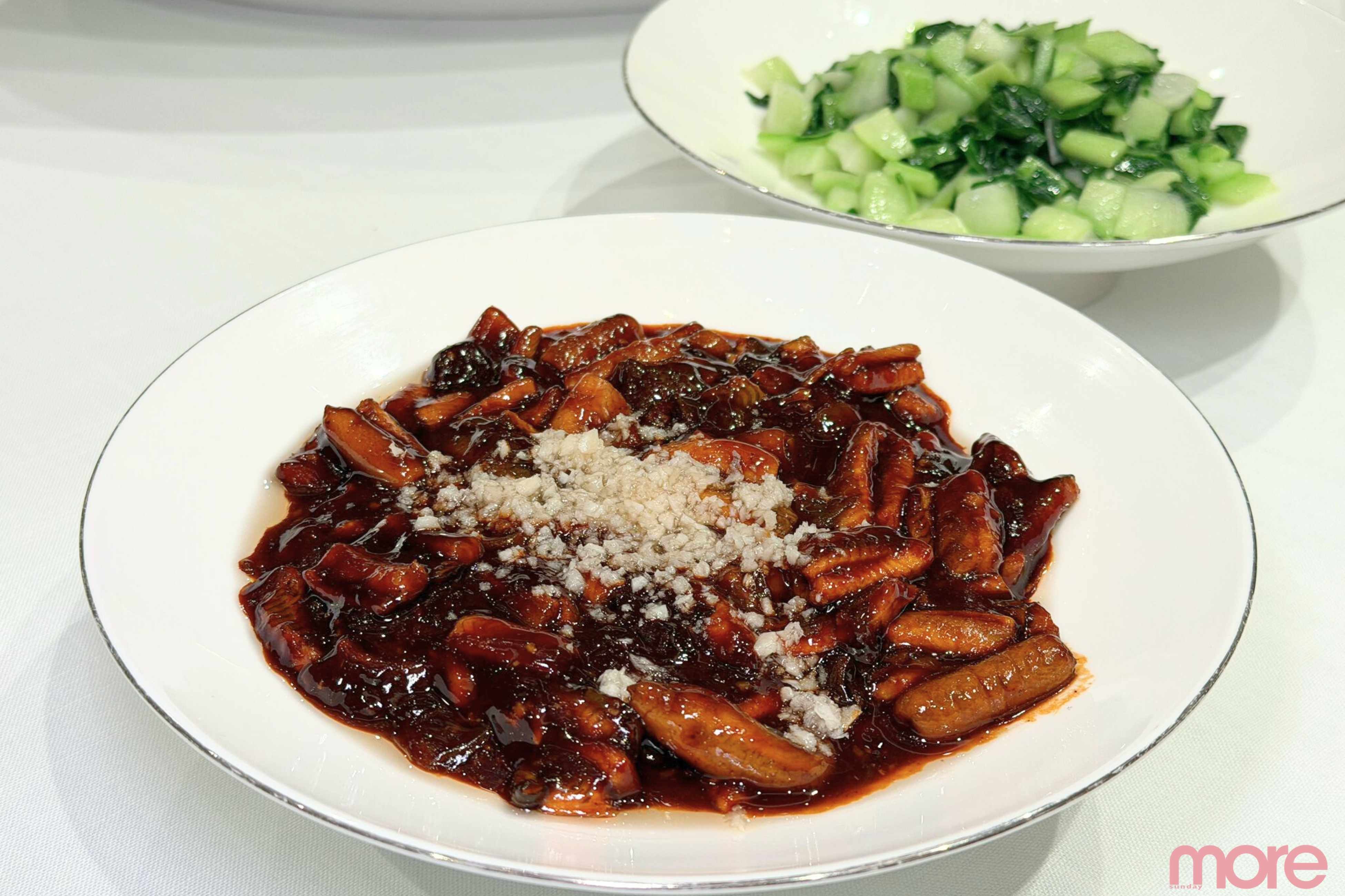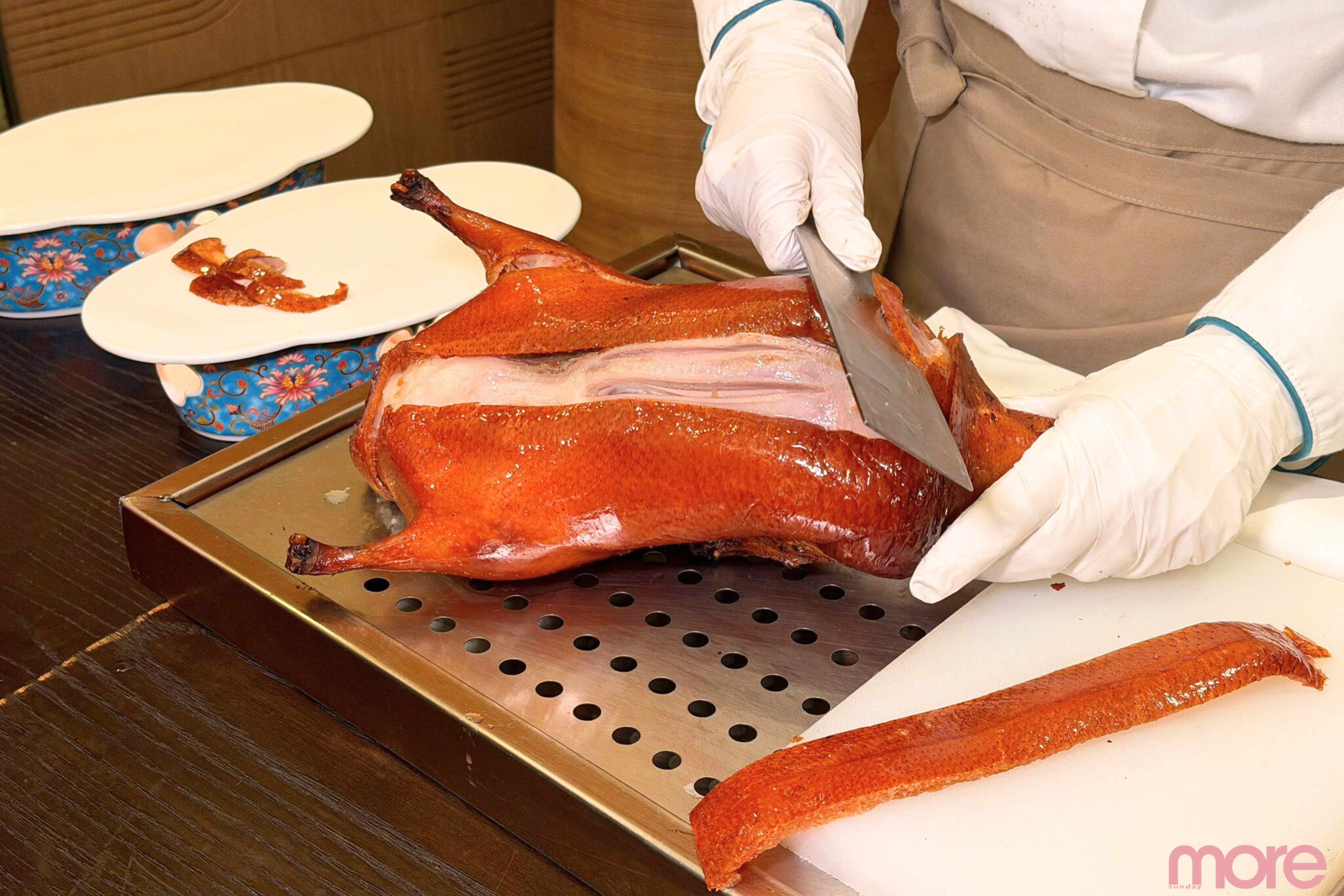 招牌果木烤鴨的幕後故事更令人驚豔:總廚嚴選「北京四系鴨」(2.3至2.4公斤最嫩),空運抵澳後經充氣、燙皮、掛糖水、風乾、入庫、排酸等近兩天細工,才入由北京專家紅磚手築的宮廷掛爐慢烤。熱力均勻逼油,皮脆肉嫩,果木煙燻添香,入口即化絕品!