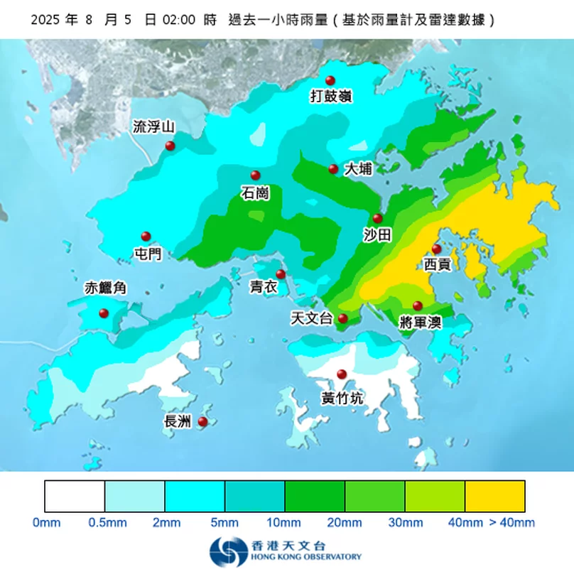 紅雨警告於深夜2時10分生效!附天文台各區雨量分佈圖