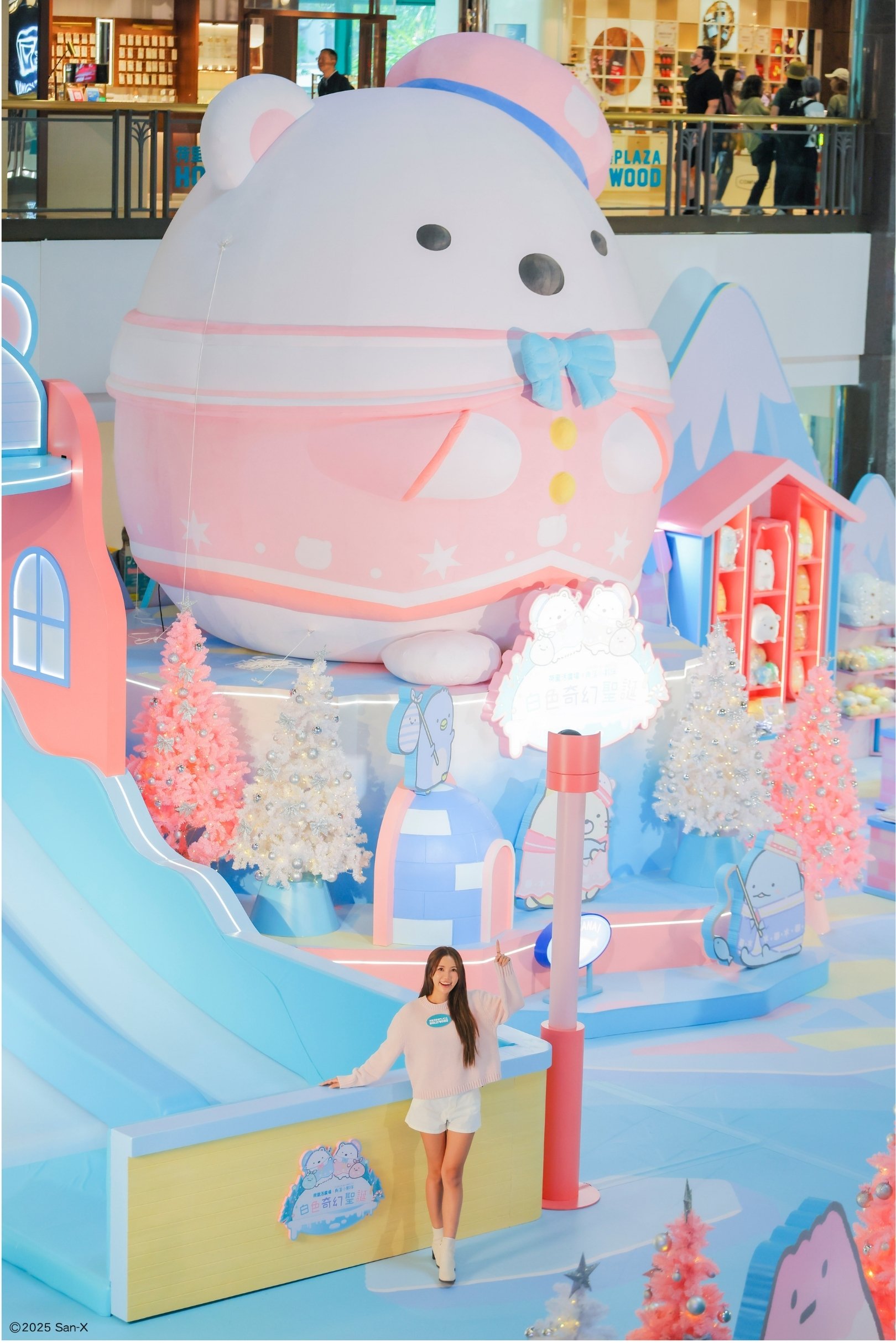 今個聖誕,鑽石山荷里活廣場聯乘日本超人氣角色Sumikkogurashi角落小夥伴,呈獻「白色奇幻聖誕」!由2025年11月15日至2026年1月4日,一眾角落小夥伴換上冬日新裝,陪你同遊夢幻雪國。場內設6大打卡區及2大遊樂專區,焦點是5米高白熊Shirokuma巨型充氣裝置,軟萌登場迎賓!另有7米長「冰雪極地飛索」與「冰極冒險滑梯」,帶來刺激體驗。期間限定店同步登場,推出雪國主題限定精品,讓粉絲盡情投入這場暖心聖誕冒險!