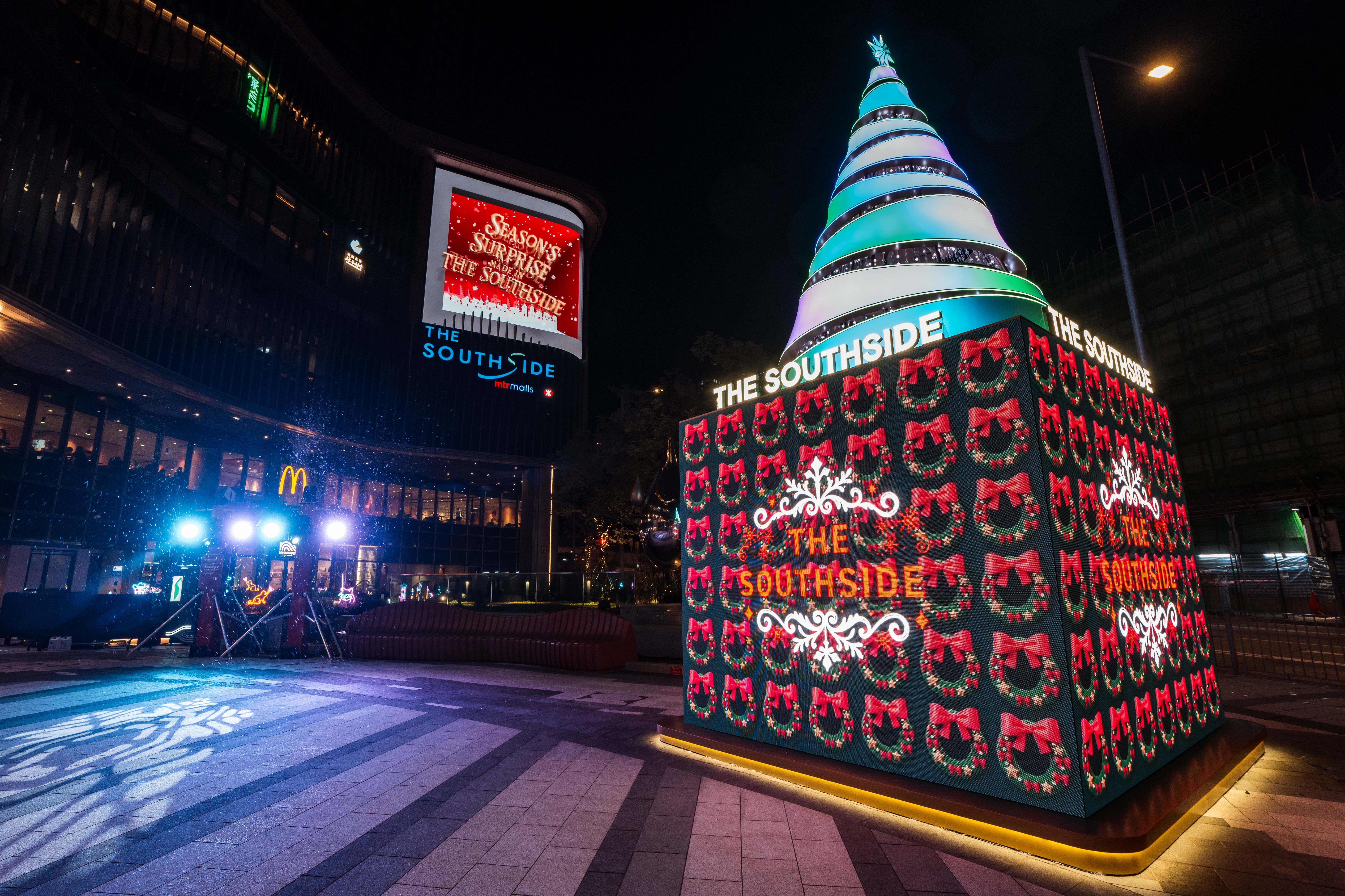 今個聖誕,THE SOUTHSIDE化身夢幻光影國度,呈獻「Dazzling Christmas」主題裝置,帶你走進璀璨聖誕世界!商場中庭矗立近10米高巨型星光聖誕樹,綴滿6,000顆閃耀裝飾,樹下更設7大華麗打卡場景與互動水晶球裝置,光影交織,夢幻動人。露天廣場設8米高LED光影聖誕樹,每晚上演「聖誕光影盛會」,配合3D裸視動畫及飄雪特效,節日氣氛滿溢。週末更有聖誕老人巡遊及音樂表演,由多位歌手與兒童合唱團帶來動人旋律,與大家共度溫馨佳節!