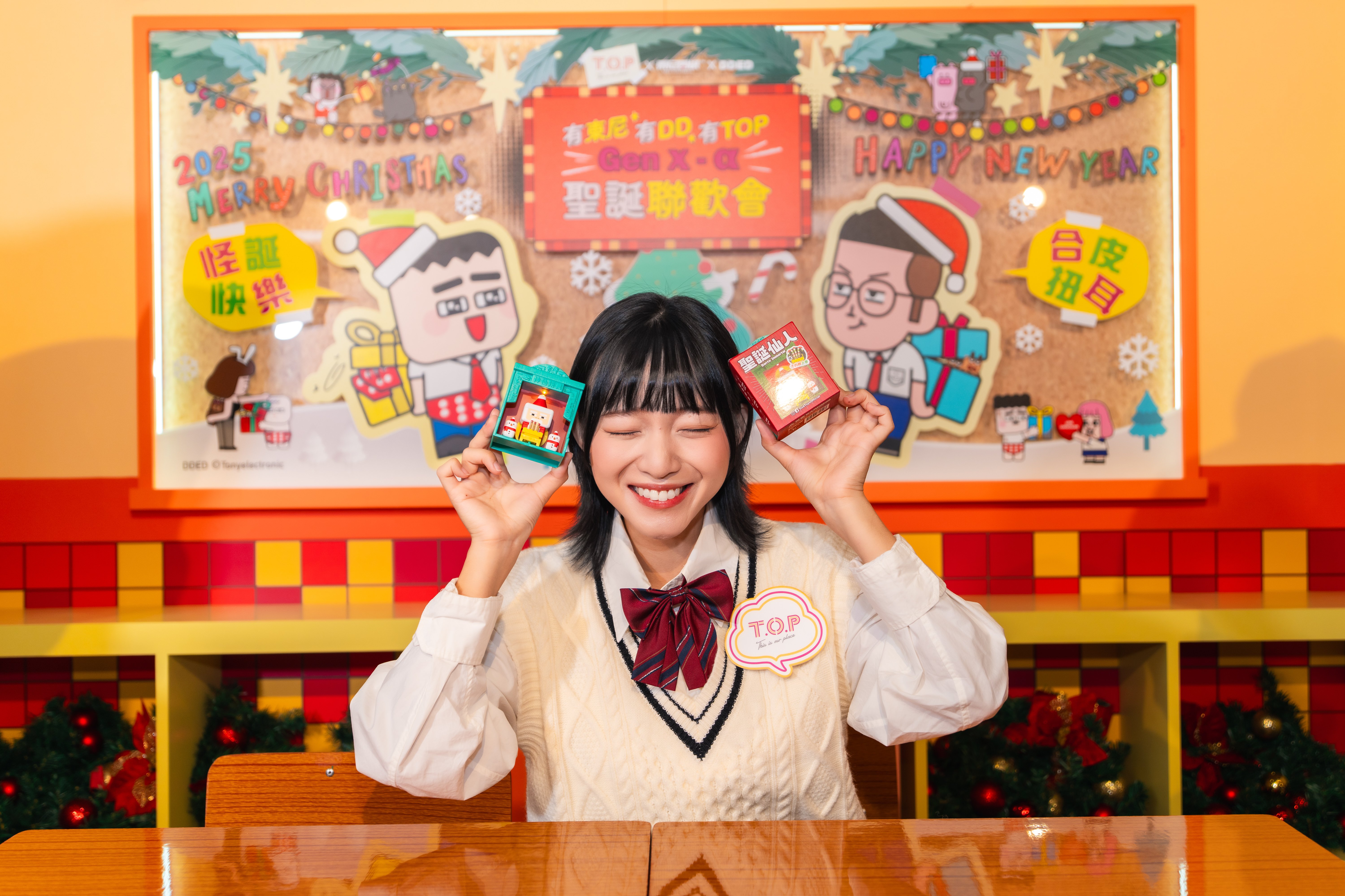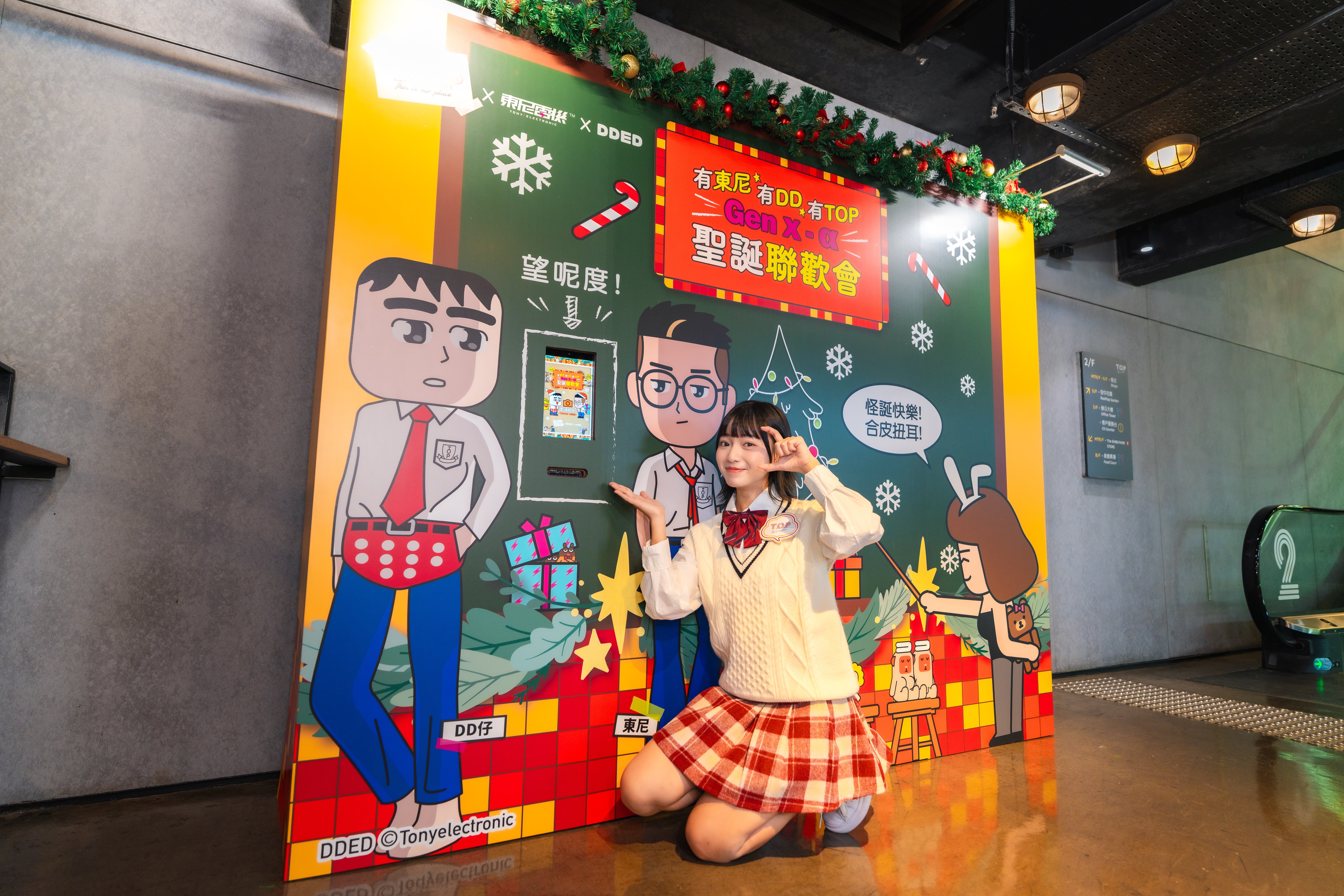 今個聖誕,T.O.P聯乘人氣插畫家「東尼電機」及DDED,帶來爆笑又本地味十足的「有東尼有DD有T.O.P – Gen x – α 聖誕聯歡會」!由即日起至2026年1月11日,商場化身「T.O.P中學」,邀請不同年代朋友齊聚跨世代派對。場內設四大打卡位,包括首度亮相3米高「聖誕仙人」裝置,祈求交換禮物好運!12月更有新晉韓星金施勲粉絲見面會及人氣歌手Busking演出,讓大家在音樂與歡笑中盡情投入最潮聖誕狂歡!