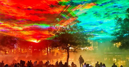德國錄像藝術家Robert Seidel在藝術公園施展鬼斧神工,以幻彩錄像投射、人造霧,以及聲音設計師Nikolai von Sallwitz創作的環迴聲景,結合原有公園旱溪的叢林景觀,建構成特別的戶外錄像裝置,讓你在雨後霧濛濛下觀賞變得跟平日不一樣的動植物,享受美妙時刻。Robert Seidel曾於法國的里爾美術館、德國Phyletic博物館等地標,以建築物為載體,創作抽象而色彩斑斕的錄像裝置,遠看宛若一幅巨型流動水彩畫。他今次為西九文化區度身訂造全新作品《夜光森林》(英文原名Petrichor,取自初雨灑在乾燥泥土並散發清香的意境),除了數碼投影,還加入層次多變的人造煙模擬霧境,以及立體聲效,於2023年2月13日至3月5日晚上,把藝術公園的旱溪和叢木幻化成夜光森林。裝置效果隨戶外自然氣象分秒轉變,你可以散步欣賞,在獨特的數碼演繹下體驗自然,聯想和感受天地萬物的壯麗與奧妙。