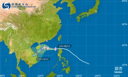 銀杏|天文台於下午12時40分發出一號戒備信號!最新動態颱風路徑及風力預測