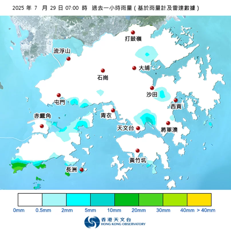 黃雨警告於上午8時05分生效!附天文台各區雨量分佈圖