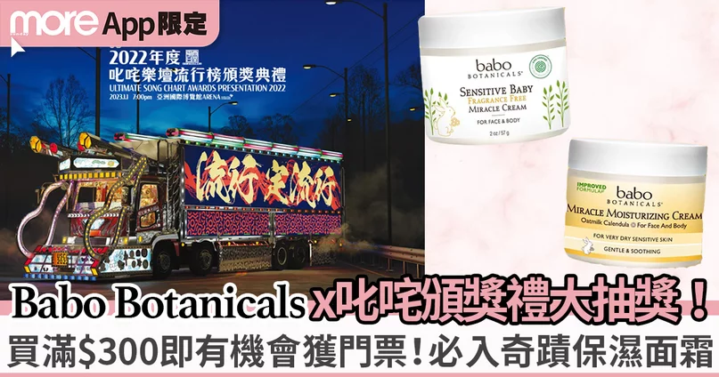 2022年度事叱咤頒獎禮門券抽獎!買Babo Botanicals產品即有機會獲得