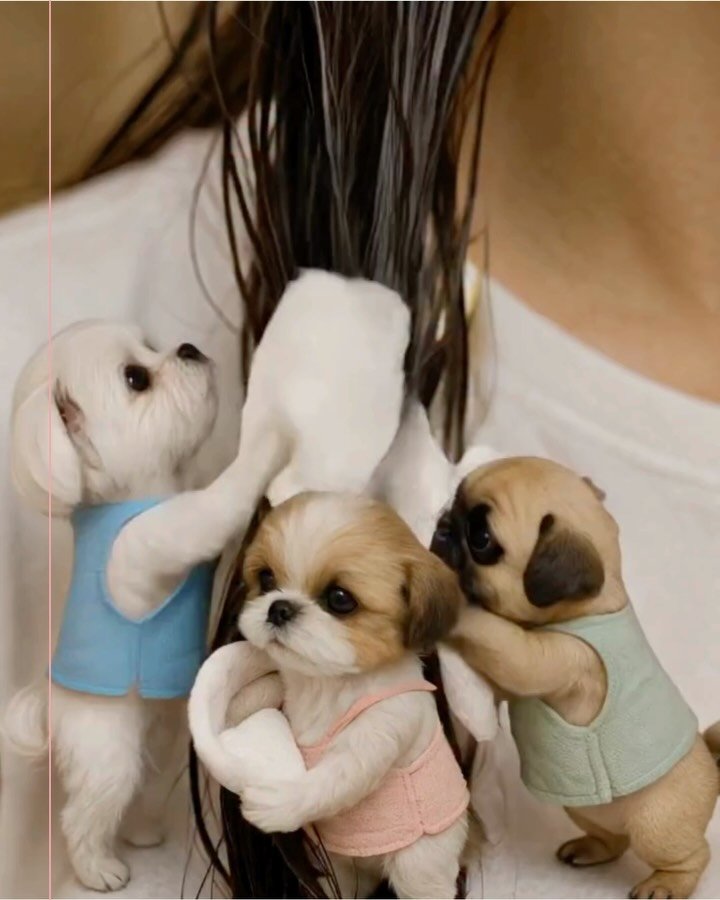 這三位毛孩雖是AI生成,但還是會出錯喔~。三隻小美容師遇到突發狀況時,那種心虛、慌張的小表情,完全就是「糟了,闖禍了!」的神還原,可愛指數直接爆表!