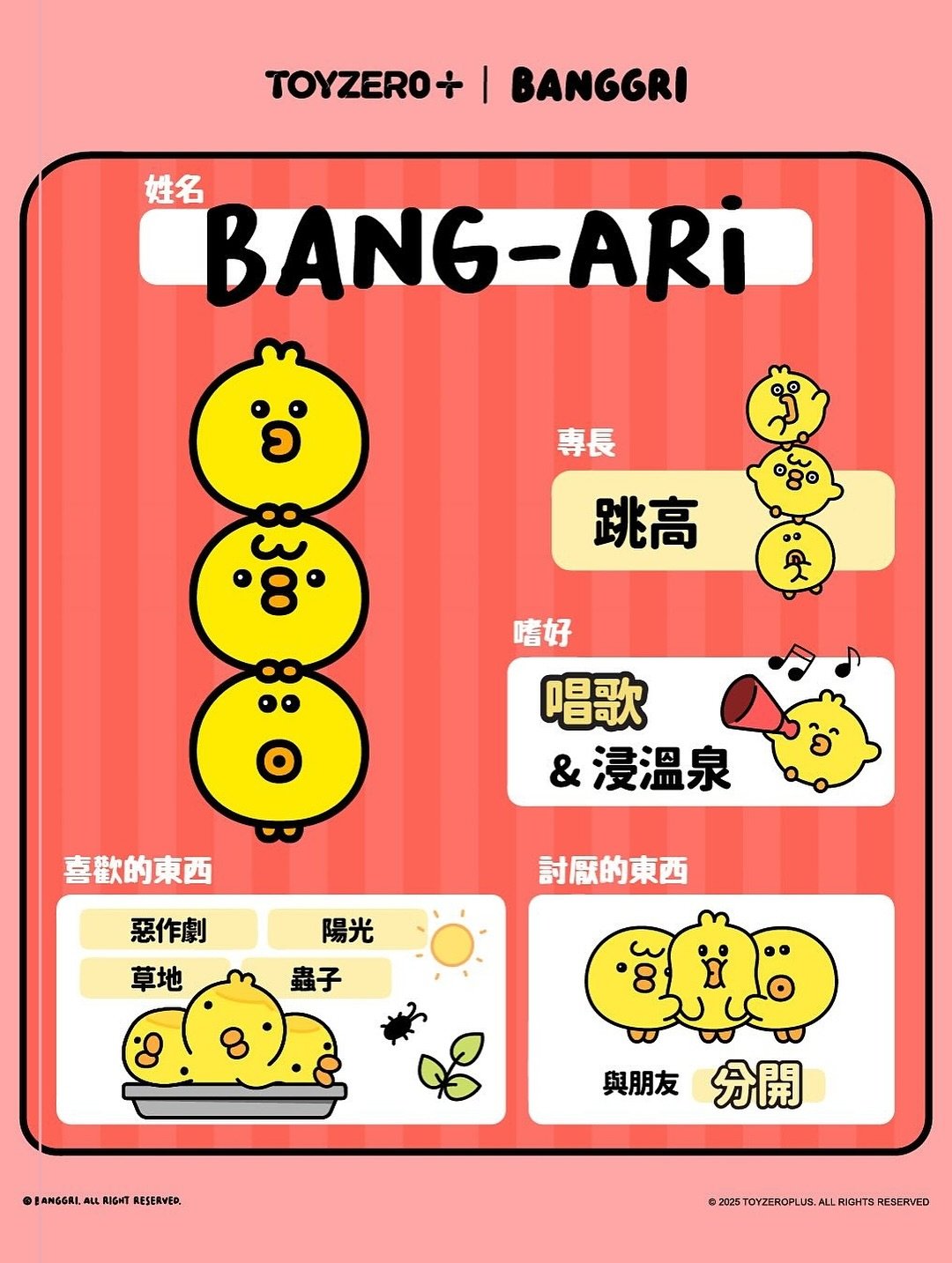 BANGGRI班尼家族以其獨特的設計和搞怪的魅力,迅速在全球掀起風潮。這些可愛的插畫角色,不僅吸引了大批粉絲,更讓人感受到生活的快樂與溫暖。韓語中的「BANGGRI」意為「快樂爆發」,正好反映了這些角色的特性!