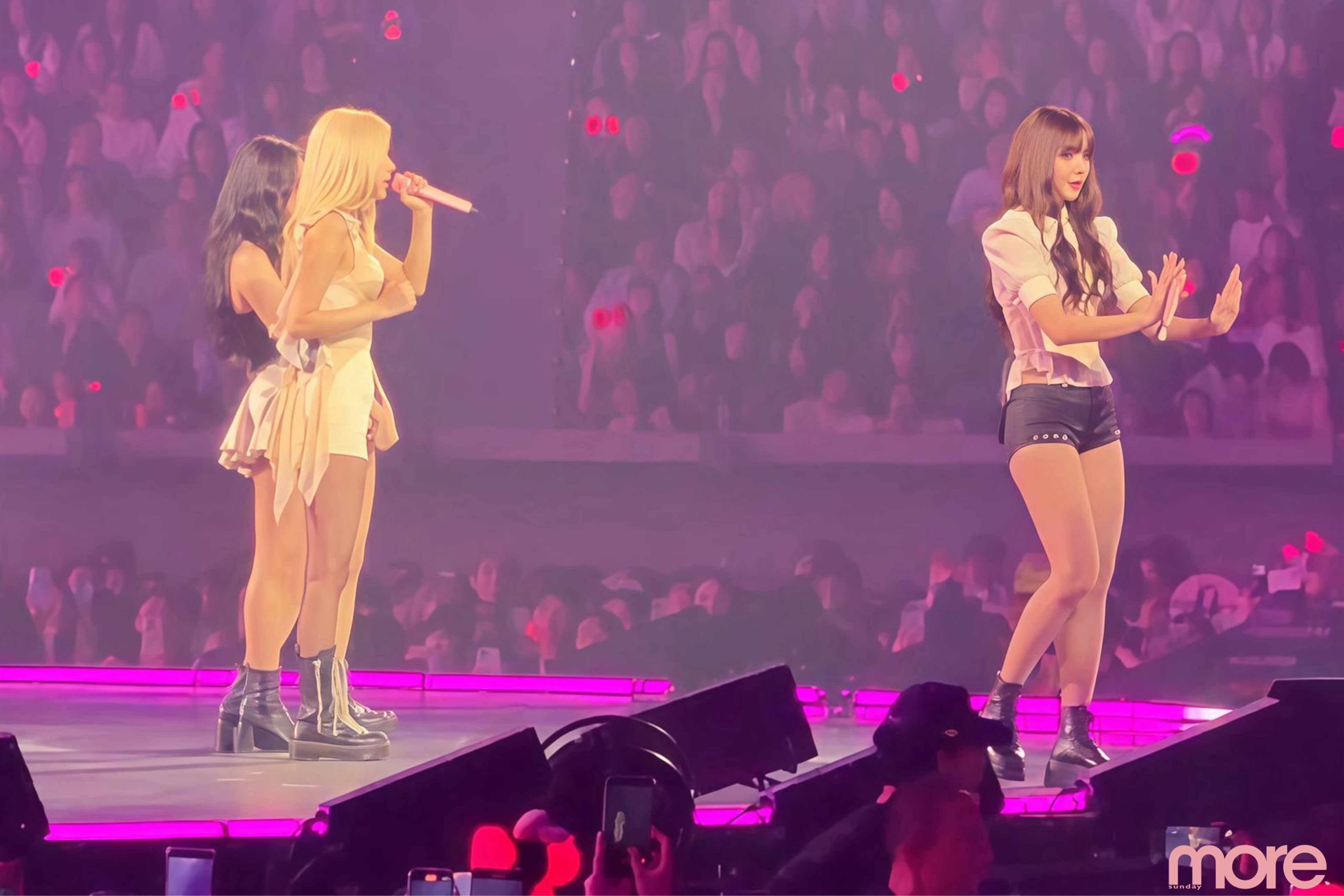 至於LISA則在個人SOLO環節中,憑歌曲〈ROCKSTAR〉再次大放異彩。她身穿露腰服飾,自信展現纖細的腰線與修長美腿。當伴隨節奏與男舞者一同勁舞時,全場氣氛瞬間沸騰,觀眾歡呼聲幾乎掀翻場館。整場演唱會表演內容豐富,舞台設計與燈光效果令人目不暇給。