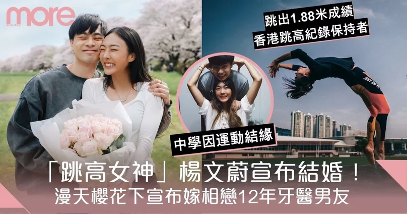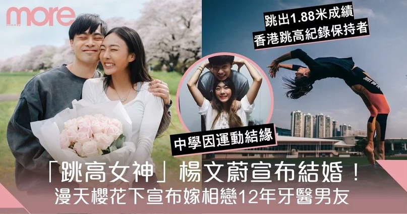 香港「跳高女神」楊文蔚(Cecilia)於社交平台上宣布,她與牙醫兼前乒乓球運動員孔軍凱(Daryl)完成12年愛情長跑,將與對方共諧連理,並分享多張左手無名指已戴婚戒的甜蜜合照。楊文蔚在貼文中分享多張在日本北海道接受求婚的美麗照片,並感慨道:「我們從校服時代談論未來結婚,到如今已經走過十二年,經歷了青春期、遠距離和沉默。我本以為會在這一刻崩潰落淚,但實際上我很平靜,因為我早就知道,會係你。」她還提到自己曾經說過希望在北海道拍攝Pre Wedding的First Love照片:「這不是最華麗或最戲劇性的時刻,完全沒有準備,但我知道那天的櫻花會永遠留在心中。現在正式了,這是永恆的!」