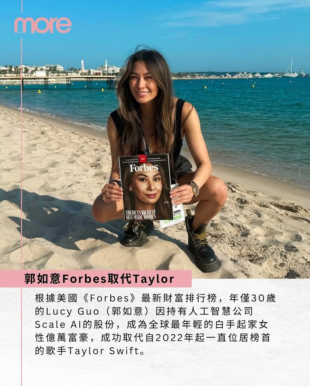 原來年僅30歲的Lucy Guo(郭如意)因持有人工智慧公司Scale AI的股份,成為全球最年輕的白手起家女性億萬富豪,成功取代自2022年起一直位居榜首的歌手Taylor Swift。一起了解這位不愛名牌又簡樸的女強人吧~