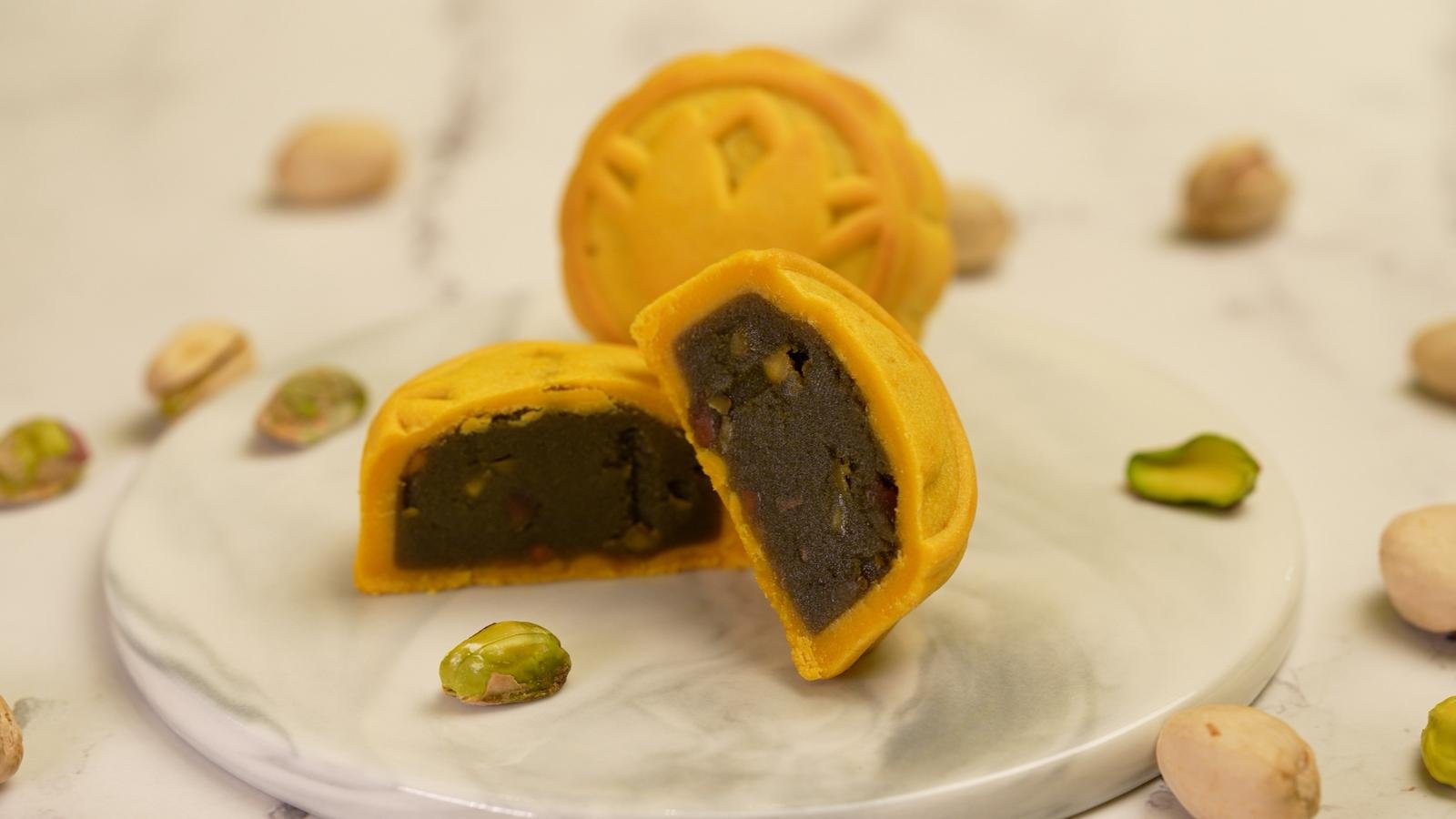 研香繼去年以港式糖水融入月餅大獲好評後,今年再度攜手望月推出三款中秋禮盒,延續經典港式風味並注入創新元素,呈獻限量匠心之作。今年焦點是兩款全新流心月餅──黑芝麻流心腰果味及流心開心果味,黑芝麻腰果月餅承襲人氣糖水「芝麻腰果露」靈感,以日本優質黑芝麻研磨成柔滑餅皮,搭配烘焙後研磨的濃郁腰果流心,口感層次豐富,芝麻香與腰果奶香交織出細膩風味。另一款流心開心果月餅則嚴選西西里珍稀開心果,不加糖烘焙,完整保留天然堅果香氣。流心內餡細滑醇厚,入口盈滿濃香,猶如品嚐濃縮開心果露。