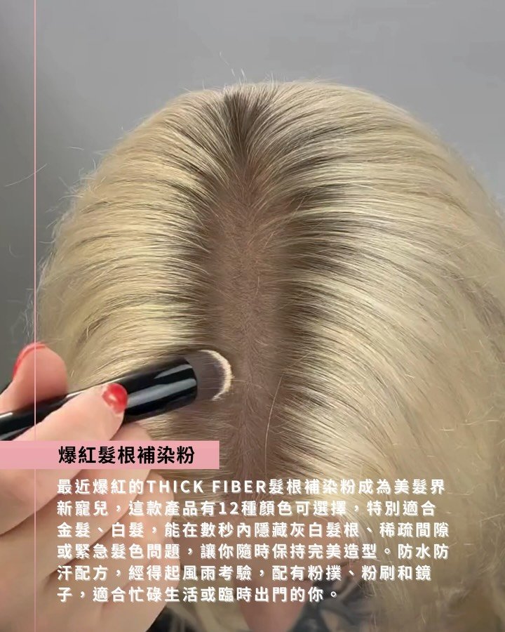 最近爆紅的THICK FIBER髮根補染粉成為美髮界新寵兒,這款產品有12種顏色可選擇,特別適合金髮、白髮,能在數秒內隱藏灰白髮根、稀疏間隙或緊急髮色問題,讓你隨時保持完美造型。防水防汗配方,經得起風雨考驗,配有粉撲、粉刷和鏡子,適合忙碌生活或臨時出門的你。