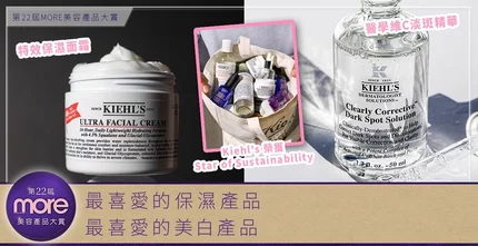 實力見證!讀者NO.1護膚品牌Kiehl's囊括【MORE Beauty Award】3大獎項 最喜愛的保濕產品、最喜愛的美白產品、Star of Sustainability