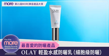 OLAY細胞級防曬 眾望所歸勇奪(第21屆《More》美容產品大賞「我最喜愛的防曬產品」16倍抵禦曬黑 強效防曬不黏膩