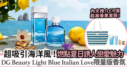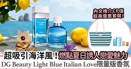 在夏天這個戀愛季節,是時候挑選與另一半的愛情香氣,為今個夏日留下浪漫難忘的回憶!超推薦Dolce&Gabbana Beauty的經典Light Blue淡香氛系列,特別是於今夏推出的兩款限定新作—Light Blue Italian Love限量版男女淡香氛,分別是散發全新木質感和感性花果香的Light Blue Italian Love Pour Femme,以及帶有濃郁木質氣息和柑橘香調的Light Blue Italian Love Pour Homme,以強烈的地中海氣息燃點夏日激情力量!