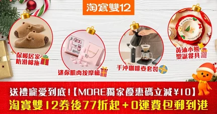 踏入12月,臨近佳節是時候向摰愛及好友表達心意,送上節日關懷及祝福!趁「淘寶雙12」壓軸限定優惠,小編挑選多款冬日貼心家居用品及精緻又實用的生活好物,為家人、好友打造充滿溫馨暖意及儀式感的冬日!即日起至12月14日11點59分,於淘寶入手心水好物,即享「官方立減券後77折起」+「0運費包郵到港*,還有《more讀者》專屬碼及升級88VIP等專享福利,絕對是掃貨黃金時機,想知詳情立即睇文!