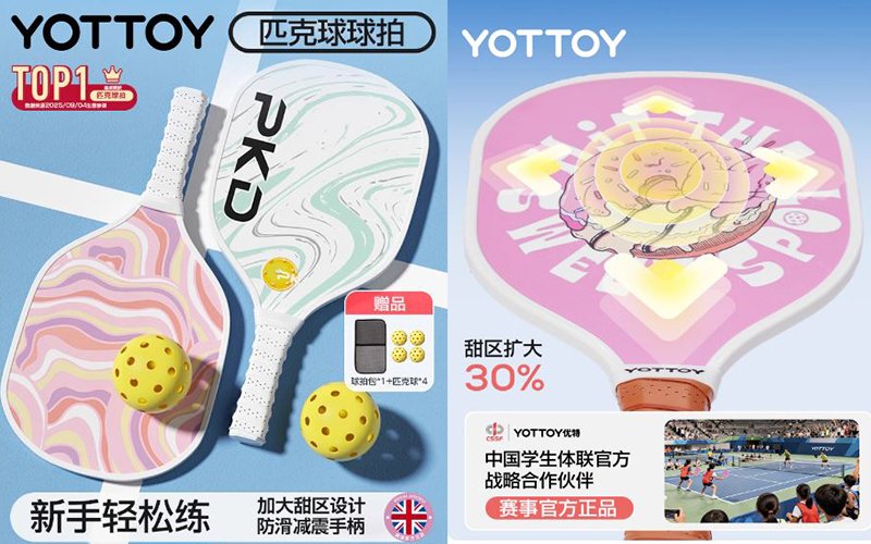 品牌乃中國學生體聯官方戰略合作伙伴,屬賽事官方正品,適合新手輕鬆練習!圖案以UV真彩打印,防水不掉色,配合甜區擴大30%、防滑減震手柄及抗撕裂防護包邊等設計非常細心,贈品包括球拍包1個及匹克球4個,絕對是給小朋友的最佳禮物!