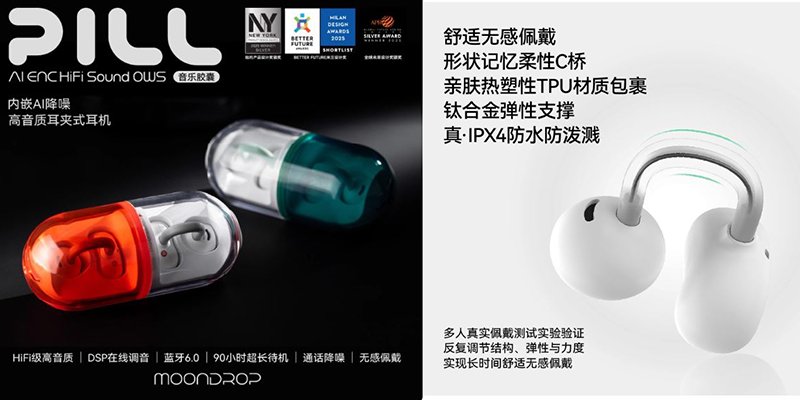 水月雨PILL音樂膠囊OWS耳夾式耳機藥丸無綫藍牙6.0運動跑步2025¥299
