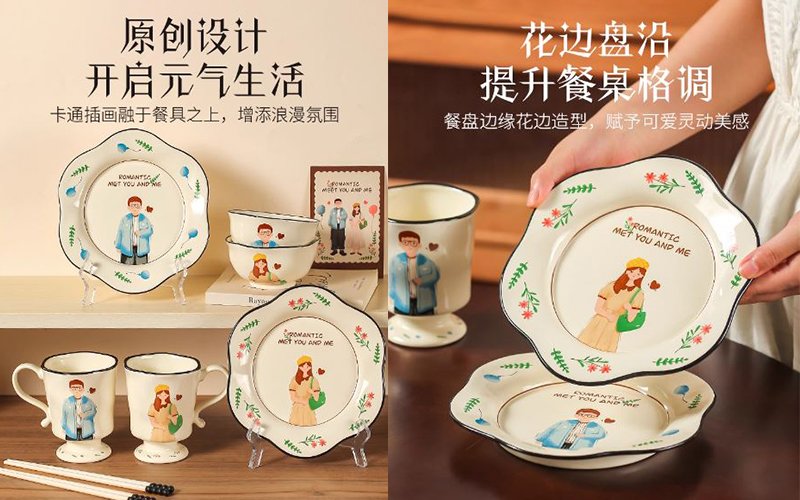 送這套餐具給閨蜜,對方一定十分驚喜!釉面設計及細膩圖案精緻可愛,花邊盤沿極具餐桌格調,用來擺桌儀式感十足!原創卡通設計獨一無二,為家居增添浪漫小確幸氣氛!一套8件包括碟x2、碗x2、杯x2、筷子x2,十分齊全。