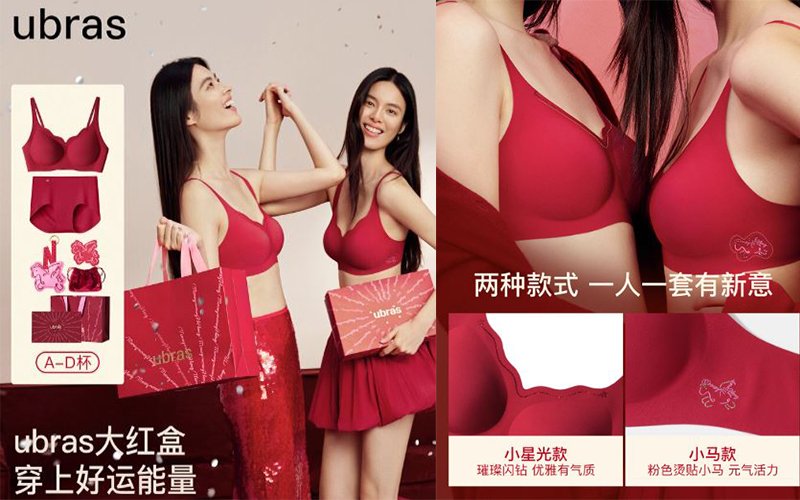 ubras大紅盒無尺碼內衣套裝禮盒女士結婚本命年馬年文胸罩內褲¥210.58