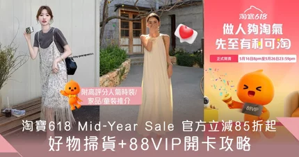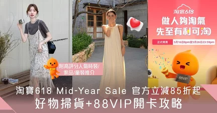 夏日將至,又是換季添新衣的好時機!淘寶618年中狂歡節已於5月16日登場,帶來無數優惠及精選好物,讓你輕鬆打造獨特風格!今次同樣為shopping控帶來一系列超吸引優惠,第一波於5月16日晚上8時開始,直至5月26日晚上23:59PM結束,不但有「官方商品立減85折」、「滿¥99包郵」等搶先購禮遇,還有「新用戶首單即減¥50」及「88VIP會員專屬優惠」!想快人一步率先入手性價比極高的夏天服裝,就要留意以下介紹,同場還有最hit家品、玩樂商品推介,記住邊睇邊打開APP:LINK放入購物車,再根據淘寶618年中狂歡節搶先購禮遇「時間表」,做足準備就出發去買買買!實行「做人夠淘氣,先至有利可淘」。