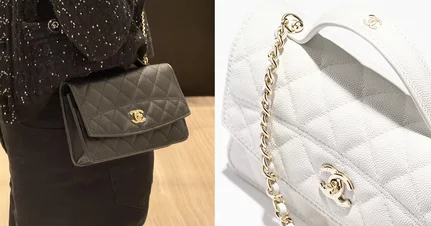 粒紋小牛皮與金屬鍊條的搭配,讓這款手袋散發出無與倫比的高貴氣息。翻蓋上的縫線設計與同系列的鏈條化妝包相呼應,為整體設計增添層次感。更吸引人的是,手袋頂部的雙 C Logo小手柄,精緻細膩,彰顯品牌對細節的追求。