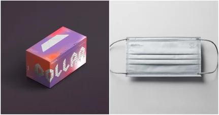 COLLAR與MaskOn._的聯乘口罩外盒色彩繽紛,以紫色與橙色爲主,如同彰顯出COLLOR活潑的形象;而盒上可反摺的領口設計別具心思,詮譯「COLLAR」團名,加上盒上的COLLAR標誌是由8位成員名字組成,有心思之餘吸睛度大增。!