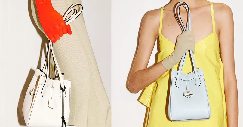 FENDI 2024年春夏女裝系列的色彩鮮艷,以繽紛的色彩詮釋迷你Origami的珍貴珠地皮革,推出粉藍色,「gianduia」咖啡色和板岩藍,還有活力黃和熔岩紅等鮮艷版本。