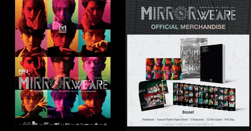 MIRROR官方[email protected]於7月6日公開周邊商品,一共12款應援商品,包括應援毛巾、演唱會Boxset、印有12位成員靚相的應援扇、BABY MIRROR X MIRROR嘅Pin Set、亞加力人物座等。所有商品將於MOOV Shop率先獨家網上預購,購買詳情將稍後於MIRROR及MOOV IG和Facebook公布!Sunday More將持續更新!