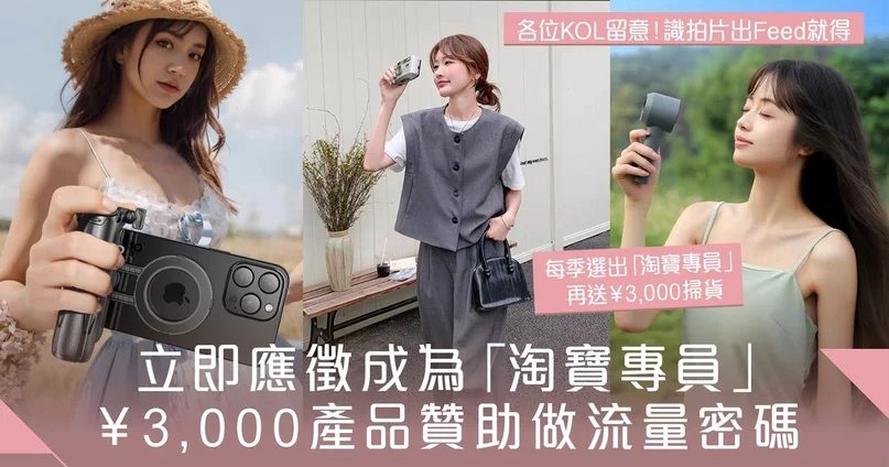立即應徵成為「Tao-Fluencer淘寶專員」 ¥3,000淘寶產品贊助做流量密碼