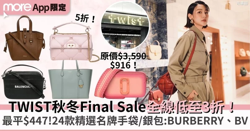 TWIST減價|TWIST 全線分店及 eShop 即將進行 2022秋冬 Final Sale LAST CALL!3 折起入手 MARC JACOBS、KARL LAGERFELD、FURLA、CHLOE’、BOTTEGA VENETA、TORY BURCH、SALVATORE FERRAGAMO 及 SAINT LAURENT PARIS 等等多款精選名牌手袋。購買一件三折或以上貨品更可享額外85折,立即親臨TWIST分店和瀏覽eShop搶購心水貨品啦,減價貨品數量有限,售完即止。