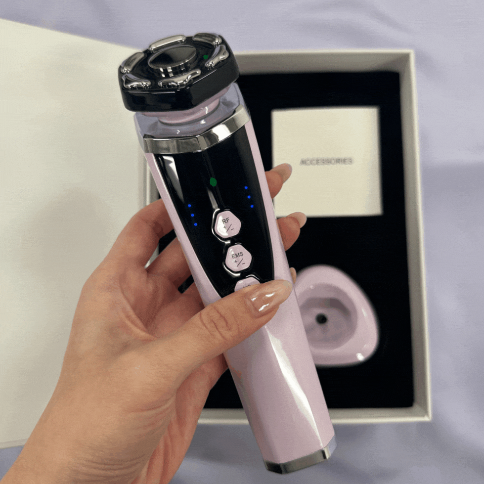 6 極 RF 射頻頭構築三層立體加熱網,提供 1MHz、2MHz、3MHz 三檔深度,能量直達 0.8mm 至 4.5mm 肌底,全面刺激膠原新生,讓皮膚更柔軟飽滿、細紋淡化。從表皮到筋膜層同步催生三倍膠原,歲月痕跡肉眼淡化。
