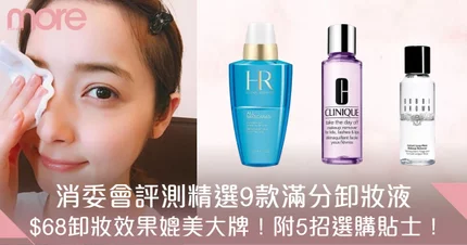 是次消委會測試中,40款卸妝產品中有近9成半樣本的評分獲4分或以上,一起看看9款總評獲5星卸妝液產品。