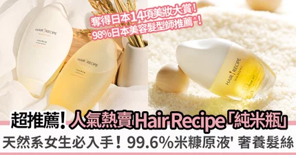 日本好評如潮!天然系保養控必入手!Hair Recipe「純米瓶」千顆米淬煉一滴精華 溫和頭皮養護