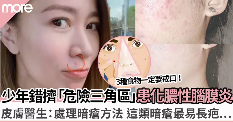 有報道指,一名內地少年因擠破鼻腔內的暗瘡,出現細菌感染而導致眼腫及發高燒,及後更引發蜂窩性組織炎和化膿性腦膜炎。沒想到只是手癢去擠一粒暗瘡,也會有如此嚴重後果。原來該男童所擠的位置是位於面部俗稱的「危險三角區」,然而,如果你細心留意,這類新聞其實久不久便會出現,所以今次就藉此機會同大家分享正確處理暗瘡方法!