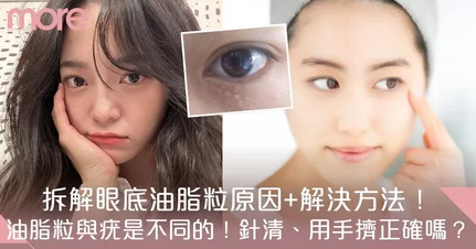 油脂粒原因+解決方法!在濕熱的環境下,長油脂粒是很常見的問題!發現眼皮、眼底長油脂粒不用太擔心,可能是日常生活習慣或用錯護膚品所導致而已!不過在解決油脂粒問題之前,先要分清楚自己長的是油脂粒還是,兩者的解決方法有所不同的!除了用去油脂粒藥膏之外,還有甚麼方法擊退油脂粒?下文將拆解油脂粒形成原因、油脂粒與疣的分別及擊退油脂粒方法,一起改善油脂粒問題還原無瑕肌吧!