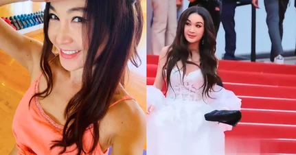 溫碧霞2023年主演並監製電影《我們的十八歲》,使她晉身製片家行列。作為香港一代性感女神,溫碧霞昨日驚喜駕臨康城,以標誌性「跌膊」晚裝登場,長裙採透視白紗設計,展露香肩之餘,亦突顯修長身型與纖瘦腰線,可謂靚絕紅地氈。