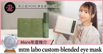 mtm labo custom-blended eye mask榮獲今年《MORE》第20屆美容產品大賞「MORE年度推介」,綜合MORE美容編輯的使用心得及評分選出並以高票當選,極具參考性及公信力,是一眾美編心目中的No.1護眼神器!值得一提的是 mtm labo custom-blended eye mask同時獲選上屆美容產品大賞的「最喜愛的眼部產品」,好評度和回購率一向極高,連編輯、讀者、KOL、名人明星等都想將眼膜推介給大家,得獎絕對是實至名歸!