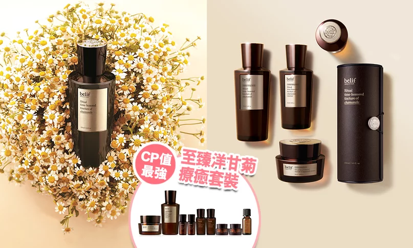 韓國天然草本護膚品牌belif相信,護膚是對身(肌膚)及心(情緒)的修護療癒,全新至臻洋甘菊光采系列透過奢華級天然優質有效成分如洋甘菊蜂蜜酊劑萃取及蘇格蘭蜂蜜等,針對改善肌膚的4C元素,全面提升肌膚質感、彈力及光采。同時產品通過皮膚測試,性質溫和,不刺激肌膚,更不含礦物油、合成香料、合成色素、合成防腐劑及動物成分,敏感肌Sis都適用。