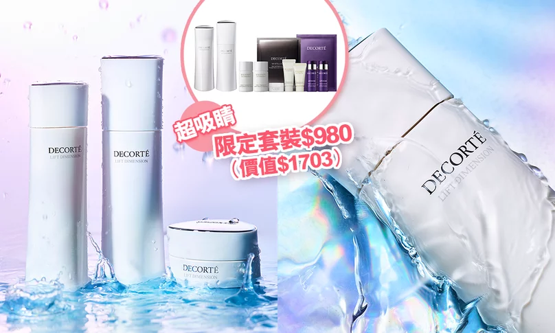 好消息!DECORTÉ特別推出Lift Dimension Brighten煥白緊緻亮肌套裝$980(價值$1,703),以接近超吸睛優惠全方位體驗DECORTÉ新品及皇牌產品共11件,一次過滿足由基本潔面、保濕以至緊緻、抗衰老等護膚需要,記得同好姊妹一齊去專櫃入手喇~